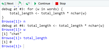 total_length <- total_length * nchar(w) # Erreur ici : mauvais calcul